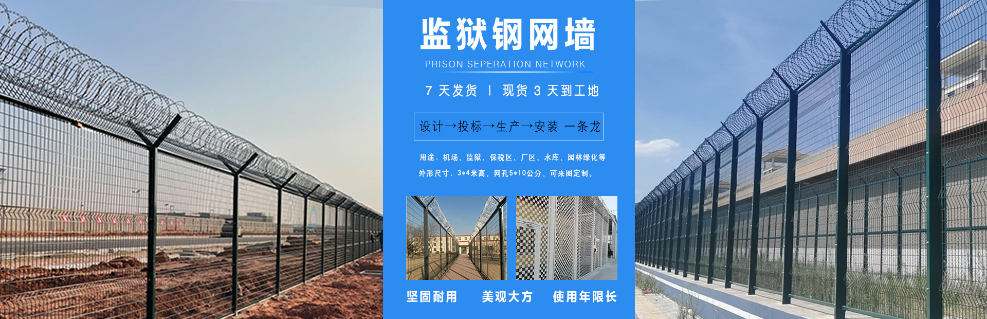 公司主營(yíng)產(chǎn)品:監(jiān)獄防爬隔離網(wǎng)、監(jiān)獄鋼網(wǎng)墻、梅花刺隔離網(wǎng)、358防爬密文網(wǎng)、監(jiān)獄刀片刺網(wǎng)、公路護(hù)欄網(wǎng)、機(jī)場(chǎng)鋼筋圍界、球場(chǎng)圍網(wǎng)、圈地護(hù)欄網(wǎng)、鐵路防護(hù)柵欄、小區(qū)防護(hù)網(wǎng)等。